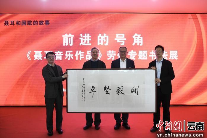 中新网云南新闻10月28日电(韩帅南)10月27日,由艾维美术馆主办、云南师范大学承办的“前进的号角——《聂耳音乐作品》劳伟专题书法展”在云南师范大学校史馆开展。