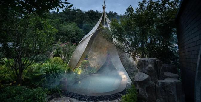 82处温泉如温暖脉络串联起全域。芒蚌温泉度假村40多间客房和主题各异的露天泡池能提供不一样的温泉体验,吸引了各地旅居客户,他们一住就是一个月甚至更久,10月份开始入住趋于饱和。梁河南甸伴山云隐康养温泉度假村景区四季皆有客来,过冬避暑各不相同,温泉雾气缭绕,飘着文化的清香。泡完偏硅酸含量较高的温泉,不仅能跟着当地人学做葫芦丝,还能在保持了原始风貌和地貌的景区里探寻非遗、抗战历史与进士文化、在《遮帕麻和遮咪麻》的彩绘画前听个悠长的故事。盈江云南之蓝的“氟泉”泡池旁能提供游客休憩,抬眼就是草地和江水,设计师把风景留足,周边还有瑞丽江—大盈江国家风景名胜区、大盈江国家湿地公园、中国犀鸟谷、诗蜜娃底、华夏榕树王等数十个旅游资源景点,引入的大盈江水形成了户户滨水而居的田园水系生活和康养度假地。