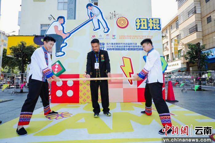 中新网云南新闻11月1日电 10月31日,全民健身边疆行——深入推进新时代兴边富民行动2025年云南省边境幸福村体育嘉年华暨瑞丽边境少数民族传统体育邀请赛,在中缅边境云南省德宏傣族景颇族自治州瑞丽市举行。本次邀请赛集竞技、民族风情与趣味于一体,设民族健身操、藤球等竞赛项目,还设傣族武术、篾弹弓、景颇族扭棍等六项民族传统体育趣味体验游戏。比赛场上,运动员们挥洒汗水、奋力拼搏,技艺在切磋中精进;体验区里,市民与游客踊跃尝试,欢声笑语此起彼伏,绘就了一幅“各美其美,美美与共”的民族团结生动画卷。