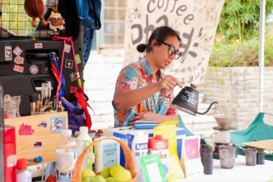 除了吃,这里还能遇见非遗!菱角编制、剪纸、花灯等非遗也相约出现在七步场。喝一杯豆乳冰萃咖啡——豆香撞上咖啡香,竟是意想不到的清爽!