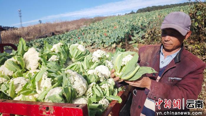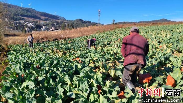 中新网云南新闻12月23日电 (王菊艳)汽车沿云南省红河哈尼族彝族自治州泸西县三塘乡塘房村的山道蜿蜒而上,正午的阳光洒向路边的层层坡地。一块地里,村民朱维青与妻儿三人正俯身其间,手脚麻利地收割着一颗颗结实饱满的松花菜。