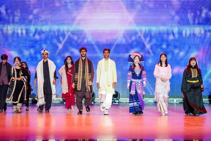 晚会节目精彩纷呈,由中外学生共同出演的开场服装秀《青春逐梦,世界同辉》,以其国际化视野和绚丽多彩的服饰设计,点燃了现场气氛,向观众传达了跨越国界、携手前行的美好愿景。
