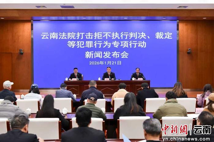 中新网云南新闻1月21日电(鲁思言)21日,云南法院召开打击拒不执行判决、裁定等犯罪行为专项行动新闻发布会,并发布5个典型案例。会议上,云南高院党组成员、执行局局长李志昆出席并向社会通报专项行动阶段性成果,执行局副局长刘维逸解读典型案例,新闻办主任唐时华担任主持。