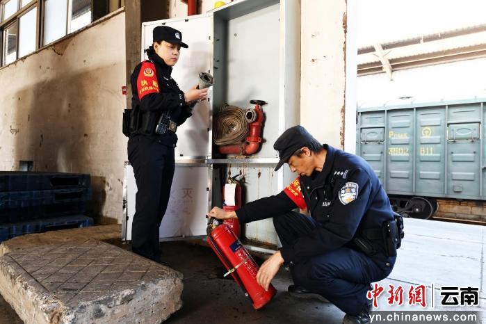 中新网云南新闻2月4日电(毕新来 杜威)“师傅,请配合安全检查,车上配备了灭火器吧……”2月3日14时许,一辆大货车停靠在云南省昆明市中铁联集昆明中心站卸货台前。开远铁路公安处王家营西站派出所民警李伟和张超登上货车,进行检查。