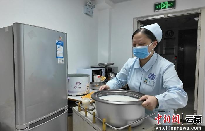 中新网云南新闻2月9日电(叶利民 孙浚玮)“打粥啦,打粥啦!”2月7日早晨8时,在云南省红河哈尼族彝族自治州第三人民医院肿瘤科住院病区的走廊,响起了一阵“招呼”声。护士张静推着盛有热粥的小平车来到病房走廊,患者和家属们陆续前来排队打粥。