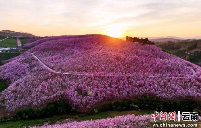 中新网云南新闻2月28日电(余青)近日,昆明市宜良县山后樱花谷,60余个品种、37万株樱花次第开放,4000亩樱花花海吸引游客纷至沓来赏花打卡。