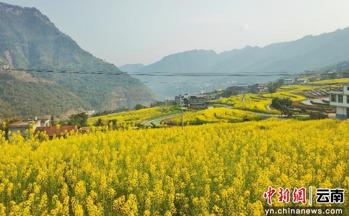 中新网云南新闻3月4日电(邓佳佳 黄融融)新春伊始,乍暖还寒。昭通市盐津县滩头乡滩头村毛坝片区的千亩梯田上,已是金黄一片。漫山遍野的油菜花竞相绽放,绘就一幅美不胜收的乡村田园画卷,吸引八方游客前来踏青赏花。