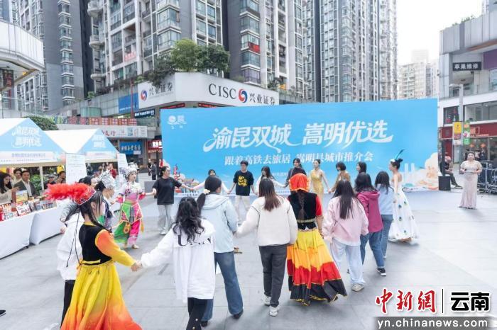 当日,“嵩明旅居生活体验展”在重庆南坪万达广场展出,嵩明县携本地知名企业及特色产品亮相,邀请广大重庆市民感受“有一种叫云南的生活”。现场设置“快闪活动”和“打卡拍照区”,通过简短精彩的快闪表演与特色场景打卡互动,展示嵩明独特自然风情与人文魅力。