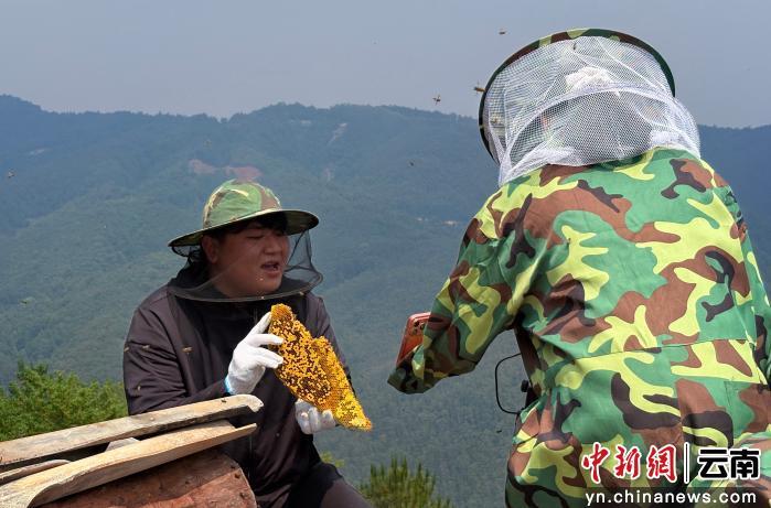 直播现场,助农主播走进东河乡核心蜜源地,体验割蜜全过程,近距离展示原生态取蜜场景,介绍养蜂环境、蜂蜜品质特点等,让屏幕前的网友真切感受到东河蜂蜜的品质。