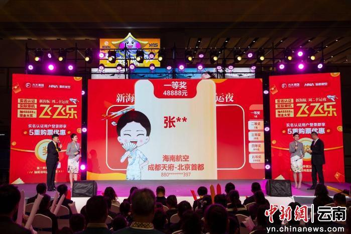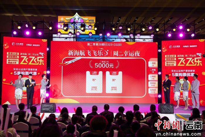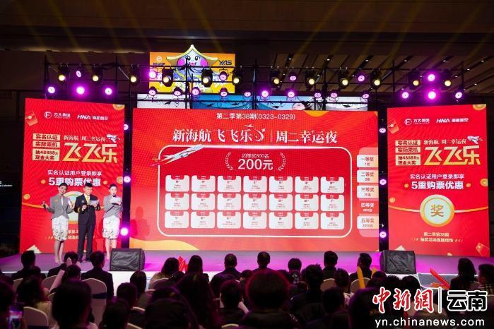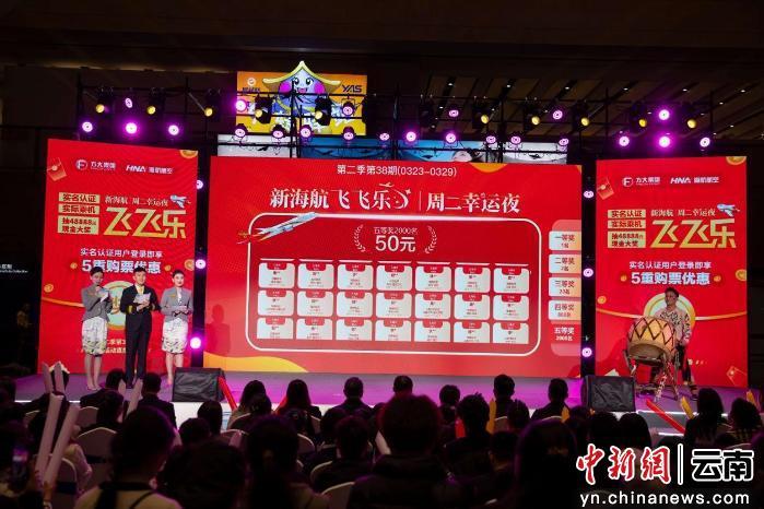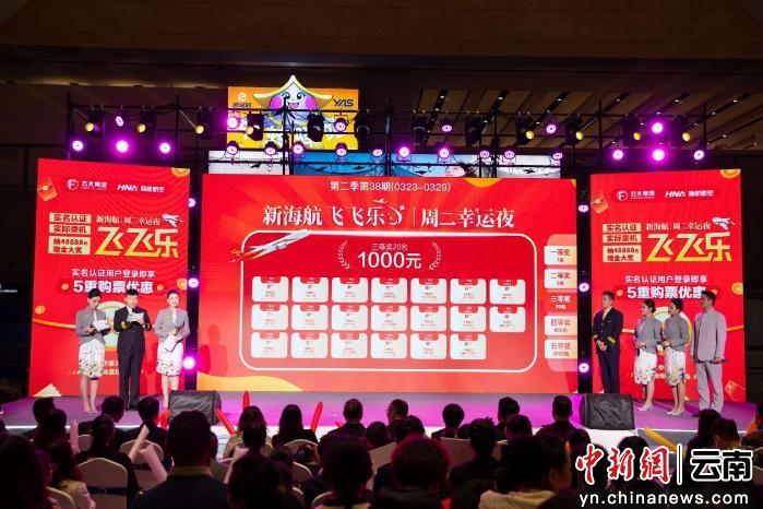 中新网云南新闻4月2日电 3月31日,新海航“飞飞乐”周二幸运夜第二季第38期抽奖直播活动在昆明长水国际机场举行。本次活动以“云端赴春城,畅游飞飞乐”为主题,融合航空资源与文旅特色,推介云南特色民族文化、夏季精品旅游线路及惠民机票产品,现场派送高额现金大奖、云南知名景区门票、免费机票及特色文创好礼等多重福利,通过“航空+文旅”融合模式,激发航空文旅消费市场潜力,实现航空服务与地方文旅发展的双向赋能。