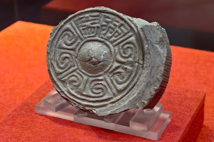 而在东部区域的上蒜一小发掘地点,考古人员发现了大型建筑基址、道路、城墙、环壕、排水系统、水井等遗迹,以及“益州”铭文瓦当、云纹瓦当、筒瓦、板瓦、菱形纹砖等高等级建筑构件。“益州”云纹瓦当顶部有小篆书写的“益州”二字铭文。在汉代,只有官署能使用标志性文字建筑。在此区域还发掘出大量的汉代官印私印封泥、官方行政文书简牍,确证此地为西汉益州郡郡治所在。