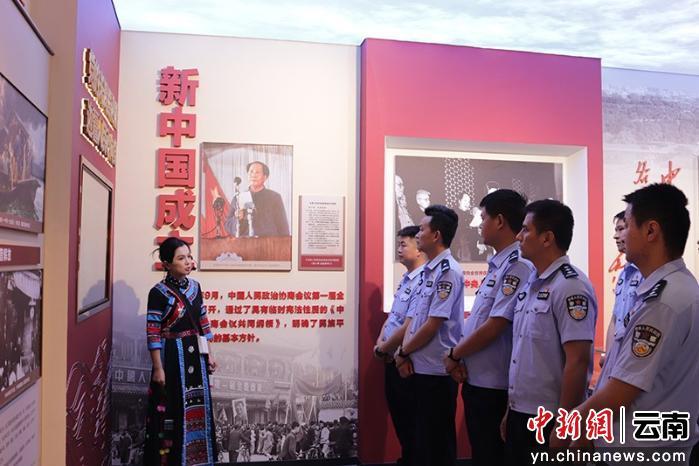 中新网云南新闻4月3日电(杜威 李清)“当年48位各族代表用汉、傣、拉祜等文字签下名字,许下一心一意跟党走的誓言,这是边疆民族团结珍贵的历史见证……”4月2日,上午10时许,阳光洒落普洱民族团结誓词碑纪念馆大门,门楣上的烫金题字熠熠生辉,庄重肃穆。开远铁路公安处普洱站派出所民警身着警服,有序步入馆内。