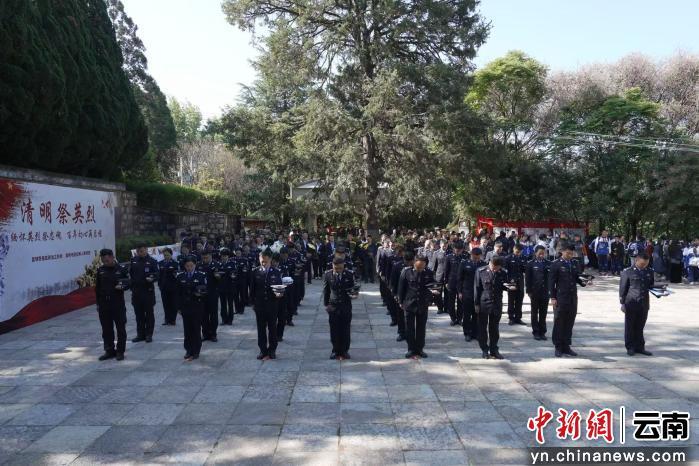 中新网云南新闻4月4日电(李彦琳)松柏苍翠,肃立无声。清明前夕,昆明黑龙潭革命烈士陵园内,50名昆铁公安青年民警整齐列队,脱帽、默哀、献花……