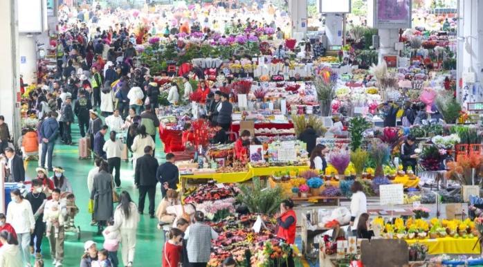 现在,从金桂街进入斗南花市的主通道,全部设为游客专用区域。三轮车和小推车从另一侧分流通行。更安全、更有序、更舒心。