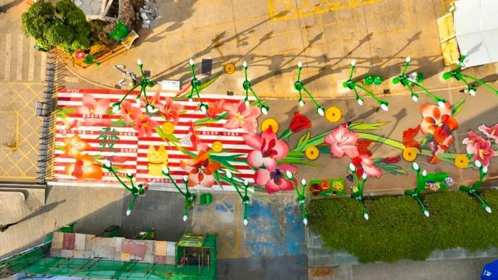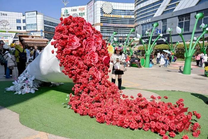 景区配套旅游厕所已建成投用,洗手池等细节配套同步完善,斗南花市内外停车场全面达标4A级景区规范,2025年11月底,剑兰花街、综合集市等特色街巷及二十余处美陈打卡点全面呈现,19.83米高的动态剑兰雕塑成为标志性景观,搭配主题拱廊街灯、四大主题幸福斑马线,“一步一景”的沉浸式游览环境,既解决了游客反映的环境问题,又满足了游客对“颜值”和“出片率”的需求,让逛游过程充满趣味。