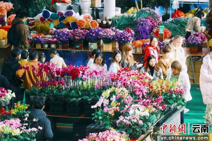 云南春日的好气候,给花卉生长搭了“绝佳舞台”,本地鲜花产能稳步往上走,再加上踏青赏花的游客越来越多,直接带动市场鲜花销量猛涨。斗南花卉市场商户李胜欢笑着说,现在斗南花市是游客来昆的“必打卡点”,不少网红、明星甚至外国友人,都专门跑来打卡游玩,直接带火了零售生意。自家每天都能卖出几千扎鲜花,生意红火得很。数据也能直观感受这份热度:今年1至2月,斗南花卉交易额就突破了22.22亿元,芍药等春季特色花卉的销量,同比涨幅尤为亮眼。除了线下批发零售火爆,线上订单也源源不断,鲜花通过冷链物流发往全国各地,让呈贡花香飘进千家万户。与此同时,斗南花市周边的鲜花主题餐饮、花卉文创、花艺展演、花漾派对等业态也跟着热了起来,现烤鲜花饼、玫瑰拿铁、花卉香氛等衍生产品特别受欢迎,真正实现了“赏花+购花、赏花+文创、赏花+美食、赏花+休闲”的全链条消费。