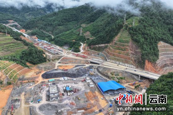 中新网云南新闻10月23日电 (赵航) 滇东南群山深处,峰峦如黛。晨雾如轻纱萦绕山间,建设中的云南省文山壮族苗族自治州那洒-兴街高速公路(简称“那兴高速”)穿山越岭、蜿蜒前行,机械轰鸣伴随着碎石炸响突破雨幕,在山坳中回转,41.2公里的后半段正上演着一场与时间赛跑的攻坚战,演奏着冲刺通车的交响。