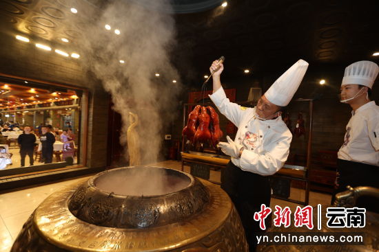 中新网云南新闻11月13日电(王怡文 熊明 高吴双)始创于1985年的学成饭店,坐落于昆石公路旁,饭店的核心招牌是有着百年历史的宜良烧鸭。
