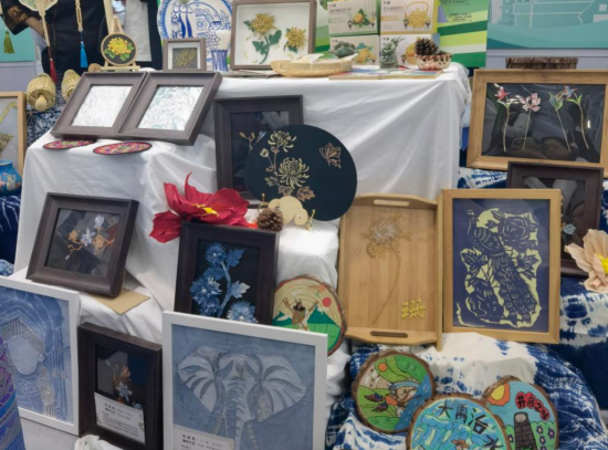 学生创作的掐丝珐琅作品色彩绚丽、纹路细腻,面塑锡箔画生动还原传统民俗场景,扎染作品融合民族元素与现代审美,每一件作品都展现着“五育并举”的育人成效;“金丝皇菊”系列茶饮格外吸睛,从新鲜菊花到烘焙包装,完整呈现课程实践链条,参观者在茶香中读懂生态教育理念;学校办学理念宣传手册、课程体系图谱被争相学习,成为传递曙光教育经验的重要载体。