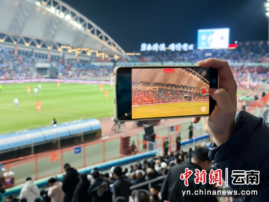 中新网云南新闻12月1日电 “开场28分钟,玉溪队一记门前扫射破门,滇超揭幕战首个进球诞生了!我们现场都沸腾了!”看台前排的球迷林希霖用手机录下进球精彩瞬间和满场欢呼的视频后,马上发了朋友圈,评论区很快被“真燃”“板扎”刷屏。11月29日晚的2025/2026赛季云南省城市足球联赛(简称 “滇超联赛”)揭幕战现场,场内玉溪队主场迎战怒江队热战正酣,场外球迷们也纷纷直播、分享赛况,拼起了网速。