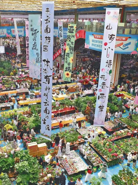 2025年7月25日,全国首个综合型花卉产业展览馆——中国斗南花卉展览馆试运营,以1365平方米叙事空间浓缩“亚洲花都”发展历程,通过“一朵花的奇幻旅程”沉浸空间,让参观者直观感受全产业链活力。以此为契机,呈贡以金桂街为轴线,将花卉市场、展览馆、未来公园、滇池绿道、斗南湿地公园等串点成线,打造“吃住行游购娱”一体化的高品质旅游目的地。数据显示,2025年1—10月,斗南花市接待游客1065.62万人,同比增长33.74%;旅游花费12.09亿元,同比增长43.58%,双增长的背后是斗南花卉产业园区以科研、交易、展示为核心的战略部署以及花卉文旅融合发展的高质量建设。2025年暑期,斗南花市日均游客量突破8万人次,市场活力显著,鲜花销量大幅增加,成功将“花式宠客”转化为“花式流量”。