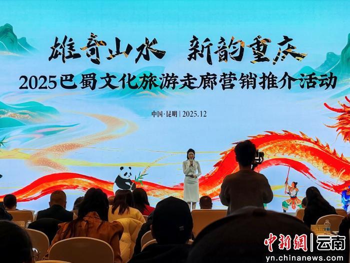 中新网云南新闻12月27电(侯晋丹)“2025巴蜀文化旅游走廊营销推介活动”25日在昆明市举行。此次活动由重庆市文化和旅游发展委员会主办,旨在集中展示巴蜀文化旅游走廊建设成果,推介重庆核心文旅资源,深化渝滇两地产业协同。