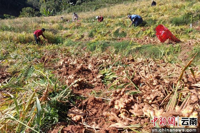 中新网云南新闻1月23日电 (范志娟 崔爽)近年来,澜沧拉祜族自治县糯扎渡镇因地制宜发展生姜种植,推动镇域蔬菜产业提质增效。时值冬日,全镇1785亩生姜迎来丰收,预计总产量达3268吨,产值可达758万元。