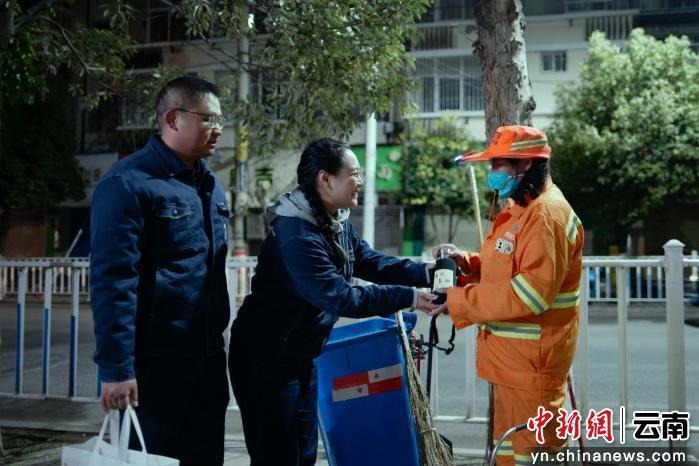 一杯姜汤暖人心,一份敬意传真情。热气氤氲的姜汤驱散了冬日严寒,一句句真诚的问候拉近了心与心的距离,橘色的环卫服与蓝色的工装相映成趣,成为大理街头一道暖心的风景线。环卫工人们纷纷表示,这份来自社会的关爱让他们倍感温暖,也将以更饱满的热情投入到工作中,用更洁净的城市环境回馈这份温情。(完)