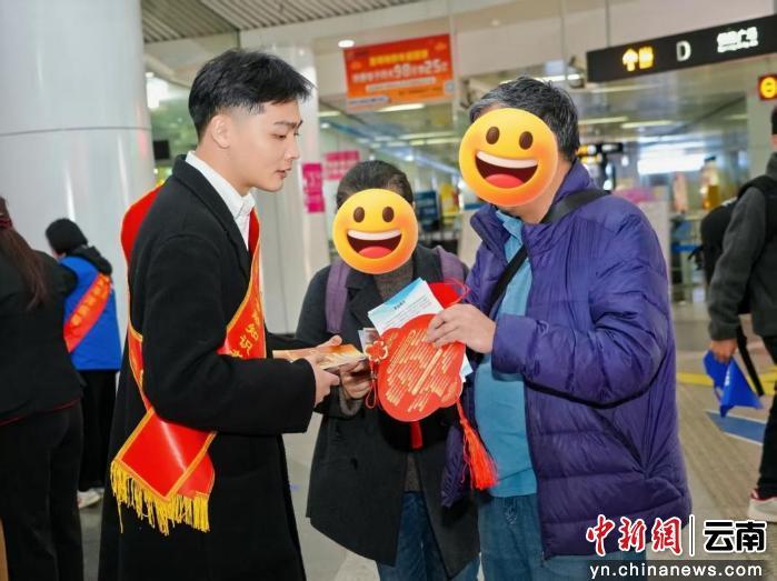 活动紧扣春运客流特点,针对不同客群量身打造宣传内容。东部汽车客运站聚焦长途旅客、中老年群体,设置“归途安心服务站”,发放定制身份证卡套与“春运暖心包”,同步播放云南16个地州方言+普通话版《云音守护》音频;地铁东风广场站面向城市通勤者、年轻群体,搭建非法中介套路解密互动墙,开展“一分钟安全快讲”,揭秘网络支付与数字金融风险;机场站针对商务旅客、境内外游客,普及跨境支付安全、外币兑换风险提示等知识,提供外币零钱包预约服务;高铁昆明南站聚焦学生与家庭出行群体,打造“提振消费金融馆”“反诈预警中心”,通过“消保知识套圈”“反诈答题赢年货”等互动活动传递安全理念。旅客王阿姨表示,“本来还担心路上遇到诈骗,现在听着家乡话安全提示,还有工作人员手把手教我识别骗局,心里特别踏实,这趟归途太有安全感了。”