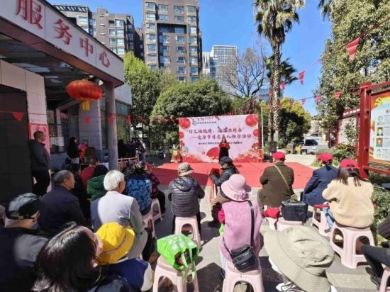 物资发放之外,活动现场还精心安排了年味浓郁的歌舞与游园。官渡文旅的花灯小戏《游春》中,蓝衫粉伞、载歌载舞的姑娘们一亮相便吸引了老人们的目光。熟悉的曲调悠悠响起,笑容从皱纹间慢慢漾开。