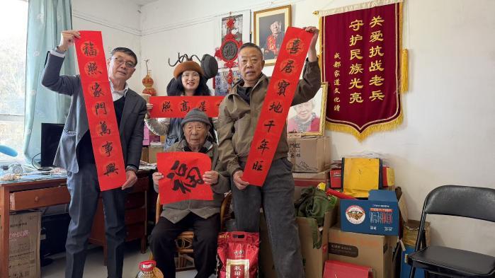 2月2日倡议发出后,爱心迅速汇聚。仅一周时间,社会各界募集善款超万元,爱心团队采购米面油等节日物资及定制红包,于2月7日正式开启慰问行程。在云南民族大学莲花池畔宿舍区,100岁抗战老兵杨毓骧接过饱含敬意的祝福。同日,92岁的著名音乐家杜丽华家中暖意融融,爱心人士贴上书法爱好者张树义手书的春联,重温其唱响全国的《阿诗玛》主题曲。著名军旅作家张昆华、书法家赵翼荣等文化名人也相继收到这份特殊的新春问候。