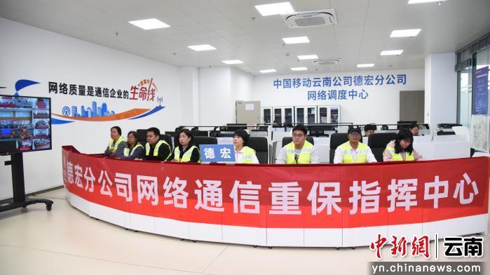 德宏移动应急通信保障人员在重保指挥中心调度保障工作