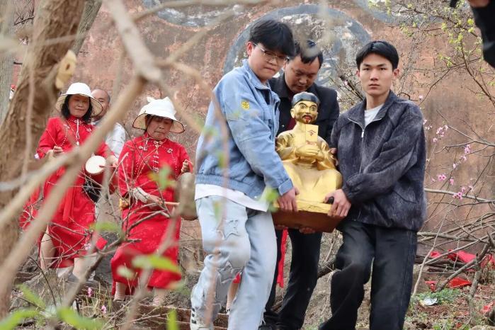 早春暖意渐浓,土主山上桃花、梨花、樱花竞相开放,在这美丽的春日画卷中,昆明市嵩明县杨林镇又迎来了一年一度的“杨林土主山接主大典”。