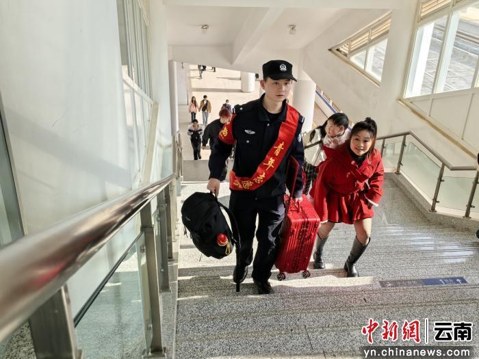 “大姐,您慢点,我来帮您拿行李,送您上车。”石林西站派出所执勤民警邵旸在执勤中发现一位旅客背着孩子独自出行,携带多件行李,行动不便,他热情上前接过行李一路搀扶护送,协助旅客顺利检票登车,并叮嘱列车工作人员重点关照。