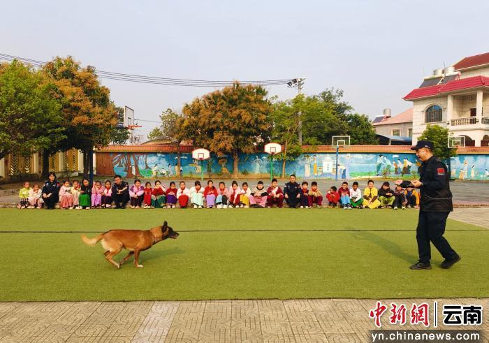 课堂不止于教室。操场上,一场警犬服从与搜捕训练演示将气氛推向高潮。警犬在指令下迅捷、精准地完成动作,引来师生们的关注与赞叹。在训导员的安全引导下,孩子们轻轻抚摸警犬,好奇与欣喜洋溢在一张张笑脸上。