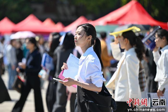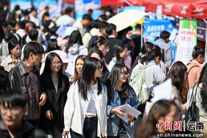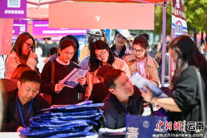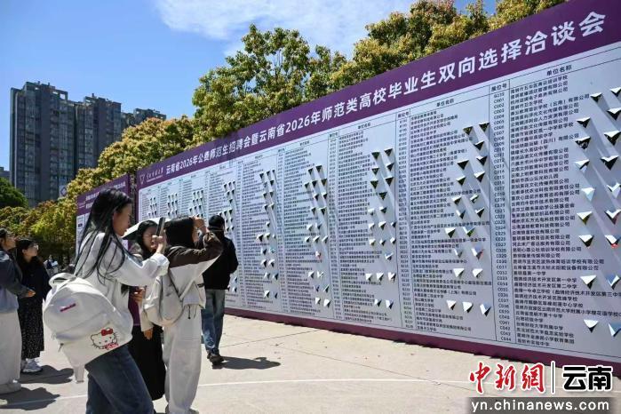 3月26日,云南省2026年公费师范生招聘会暨云南省2026届师范类高校毕业生双向选择洽谈会在云南师范大学呈贡校区举办,此次招聘会吸引来自省内外的450余家省内外用人单位参会,近3万名师范类毕业生到场求职洽谈。中新社记者 李嘉娴 摄